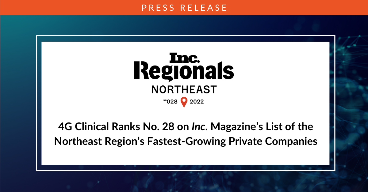 "As clinical trials become more complex, it is more important than ever to enable researchers to adapt based on trial needs," says David Kelleher, CEO, 4G Clinical. "We are tremendously grateful for our part in enabling them to follow the science and for our collective impact on patients worldwide. Being named on Deloitte's Fast 500 is an honor for our entire team."